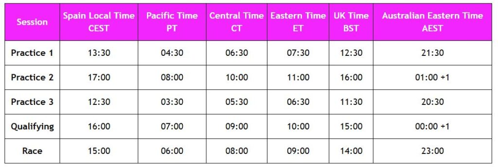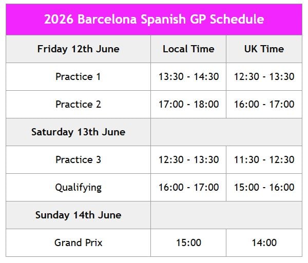 Below is the 2026 Barcelona Catalunya Grand Prix schedule for all F1 practice, qualifying, sprint and race sessions over the race weekend.