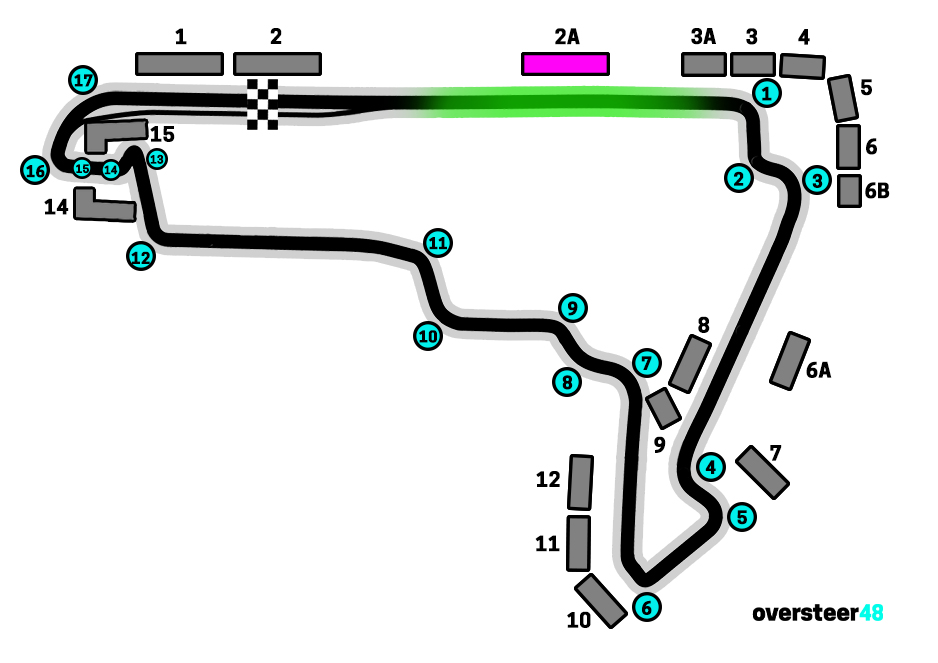 The image below shows the parts of the circuit you can see from this grandstand highlighted green: