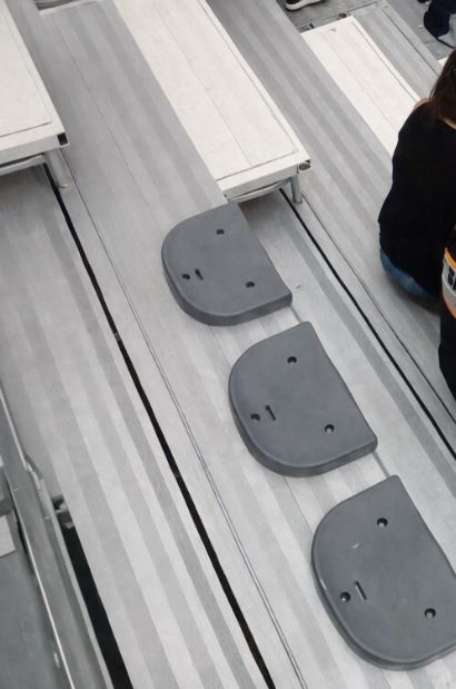 The seats are metal bench style bleacher seats with a little plastic pad to sit on. The metal benches will be hot – bear that in mind in case you have any bare skin that touches them.