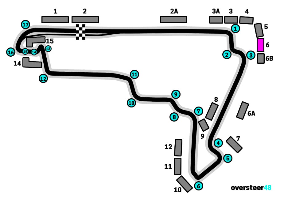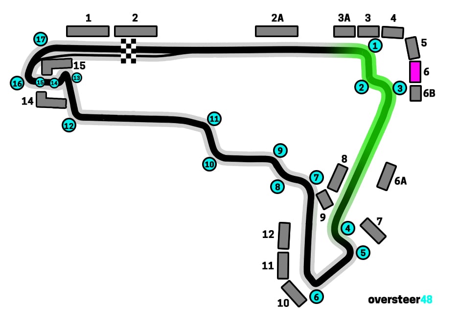 As the map shows, from Grandstand 6 at the Mexican GP you have a great view overlooking Turns 1, 2 and 3 – the first chicane where most of the overtaking and action happens, especially on the opening lap.