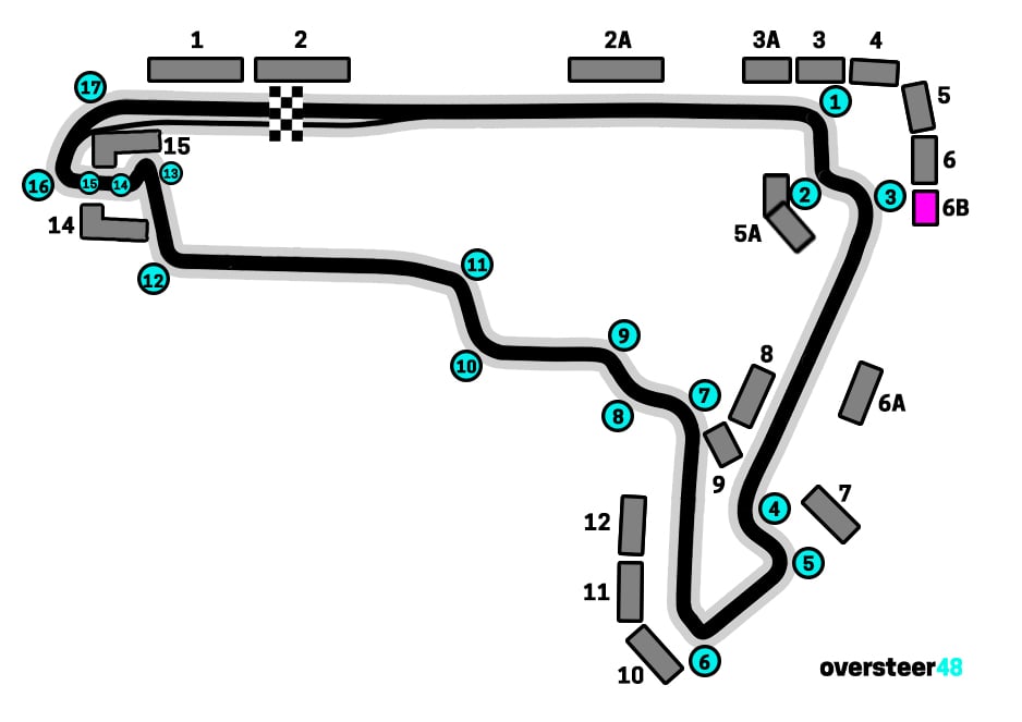 As the map shows, the view from Grandstand 6B at the Mexican F1 is mainly of the first chicane – turns 1, 2 and 3. From this grandstand Turn 1 will be a little further away and harder to see especially from the lower rows of the stand. The higher rows will give you better vantage point to see all three corners.