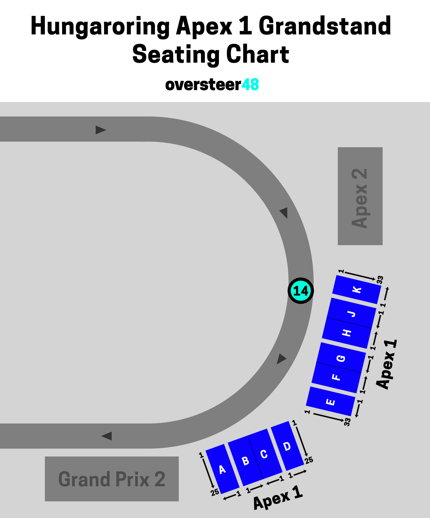 Below is the seating plan for the Apex 1 grandstand at the Hungaroring: