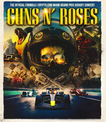 At the nearby Hard Rock Hotel & Casino, Guns ‘N’ Roses will be playing on Thursday April 30th at 7pm to kick off the Miami Grand Prix weekend.