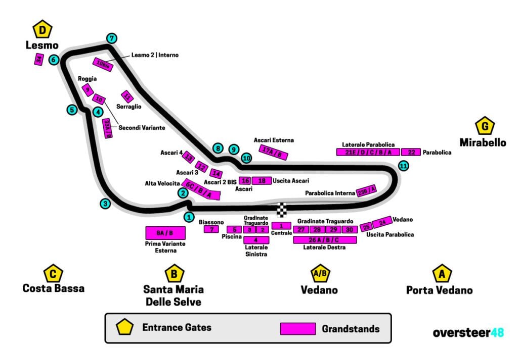 Ideally, when planning your travel to the Italian Grand Prix, you’d aim to end up near a gate that is closest to your grandstand, or to the General Admission view area you plan to watch from, to minimise the amount of extra walking you need to do during the weekend.