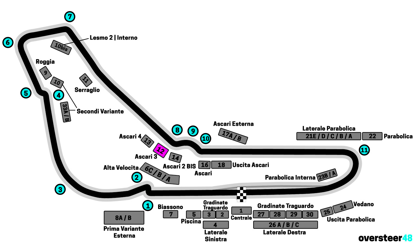 This is my spectacting guide to grandstand 12 Ascari 3 at the Monza Italian Formula 1 circuit, which you might also see named Tribuna Ascari 3 or Tribuna 12.