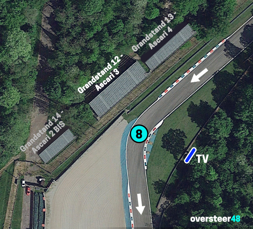 As the image above shows, from this stand you have a perfect view of the three corners of the Ascari chicane.
