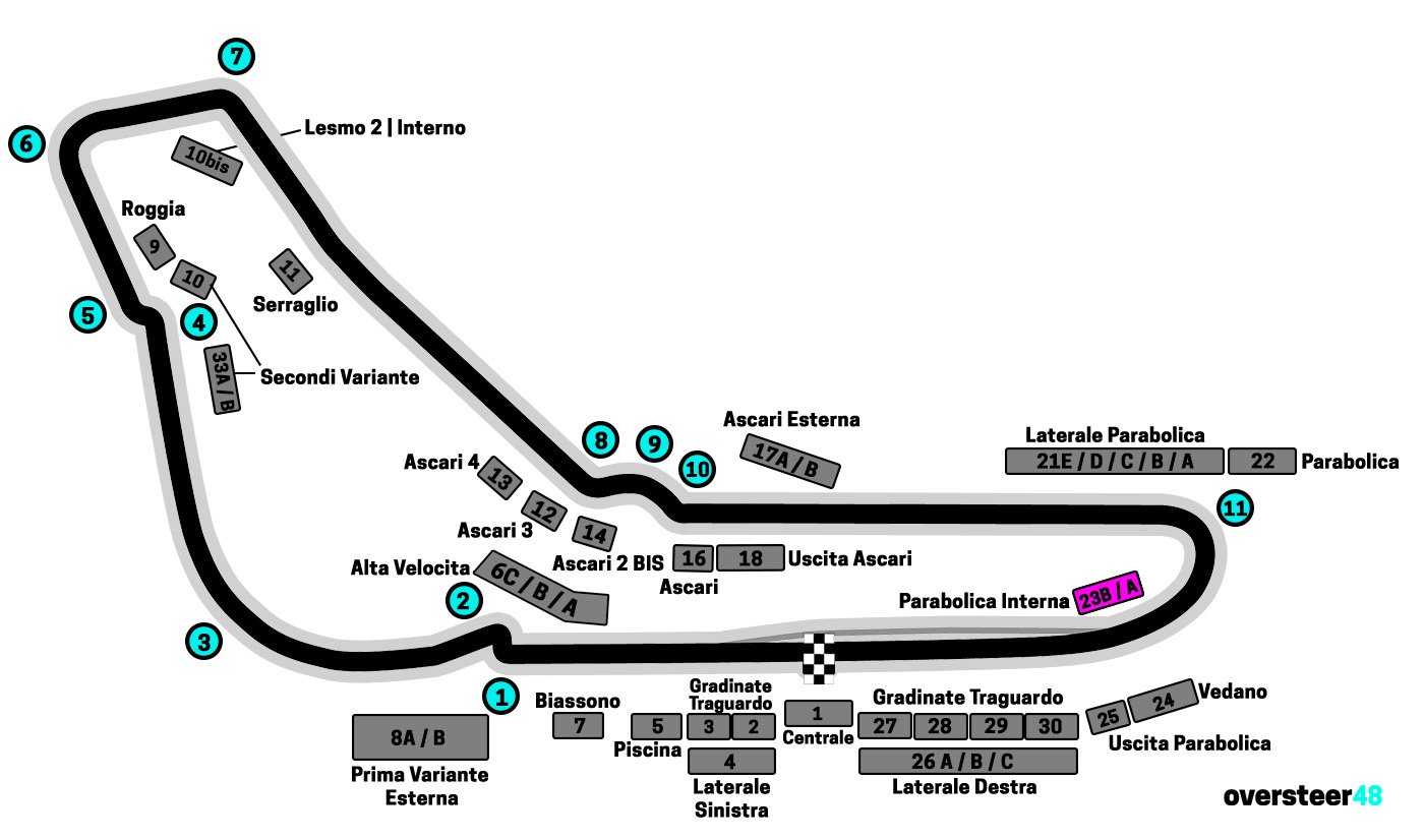 This is my guide to the two grandstands at Parabolica Interna – grandstand 23A and grandstand 23B – at Monza for the Italian Grand Prix.