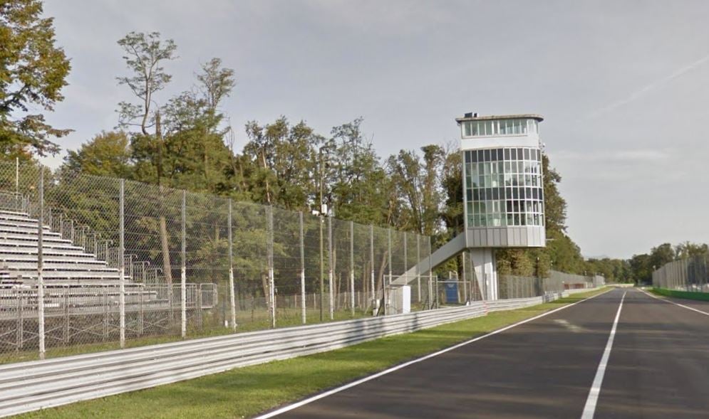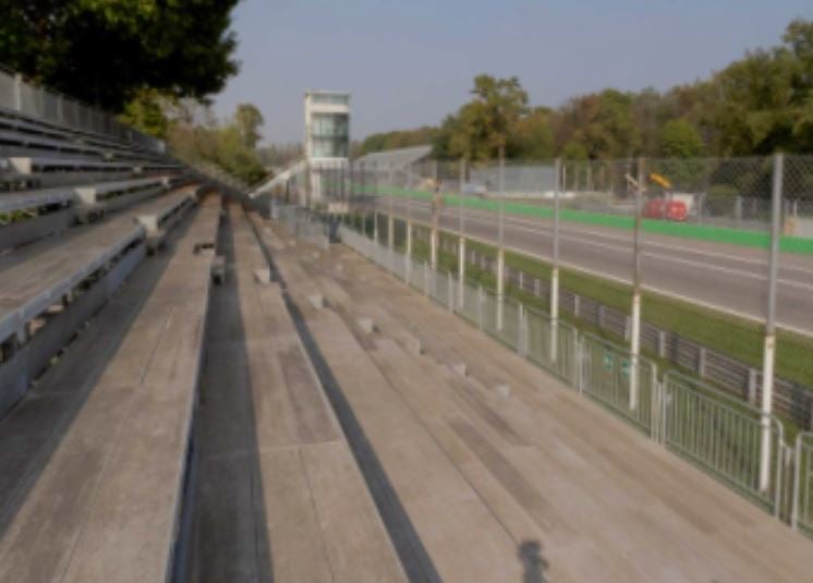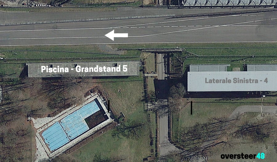 The Piscina grandstand at the Italian Grand Prix circuit is situated on the left hand side of the start / finish straight, a short way past the start line.