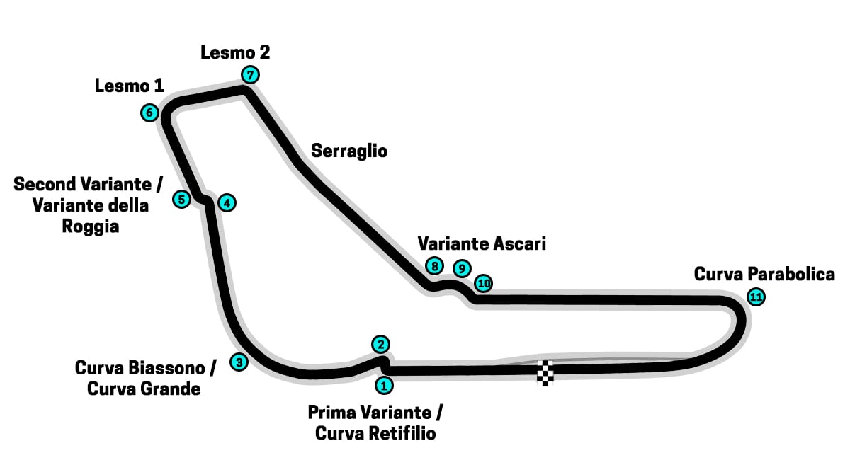 The corners at Monza are given the following names: