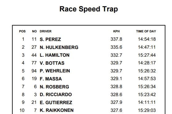 Austrian Grand Prix F1 top speeds