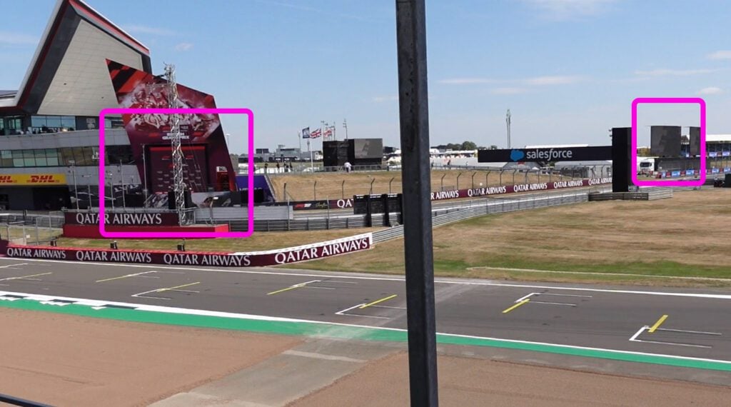 In addition, the background of the podium is used as a screen during the F1 sessions. The image below shows both of these, taken from the back row.
