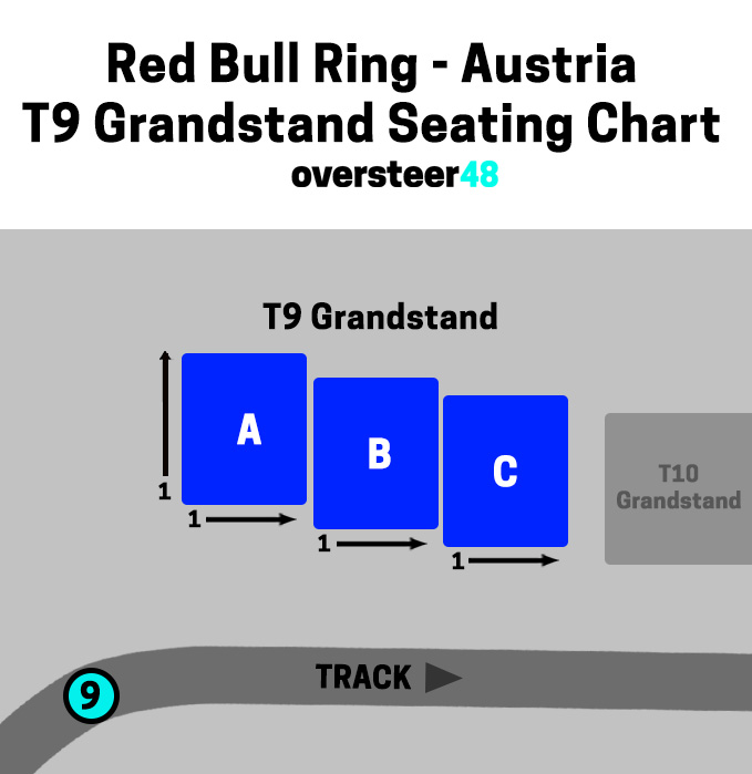 Below is the seating plan for the T9 grandstand at the Red Bull Ring: